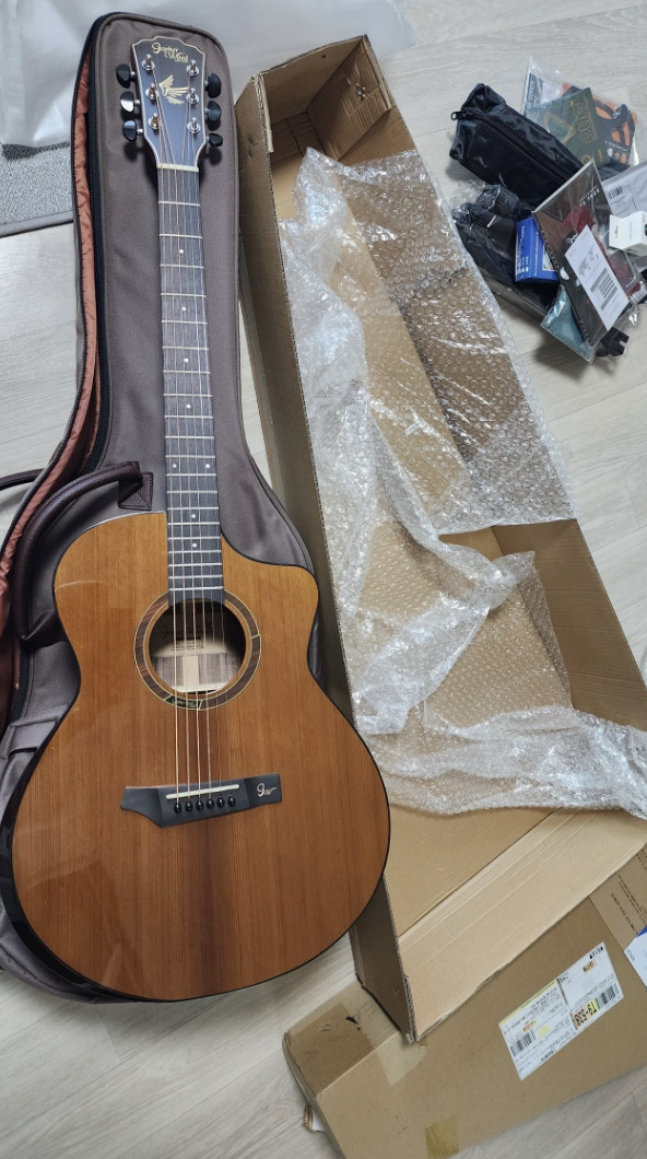 OM바디가 고음부분 소리 가 매끄럽지 못해서 불만이였는데 소리 매끄럽고 좋습니다. 사실 디자인만 보고 예뻐서 사려고 한건데 이 기타는 디자인, 성능, 가성비까지 모두 갖췄네요. 중급기타로 많이들 추천하는 이유를 알것 같습니다. 보면대랑 발판이 생겨서 연습하는데 너무 편할 것 같아요. 다리꼬는 자세는 자세틀어질까봐 꺼려졌는데 발판이 있어서 너무 좋습니다. 새 기타라서 그런지 지판부분에서 제 코에는 바다향같은게 나는데 시간지나면 날아가겠죠? ㅎㅎㅎ 무튼 감사합니다~