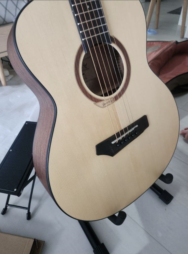 일단 포장상태가 매우 좋았습니다. 기타백 안에 안전하게 잘 포장되어 도착했네요. 세팅 섬세하게 잘 봐주신느낌 이 들고 생각보다 덩치는 작은게 소리는 꽤 우렁차게 잘 내주네요. 편하게 앉아 작곡이나 어디 놀러갈 때 간편하게 휴대용으로 사용할 용도로 구매했는데 너무 만족스럽네요. 고퍼우드 제품은 처음 사용해보는데 소리나 품질, 마감상태 까지 너무 맘에 드는 제품이네요.
