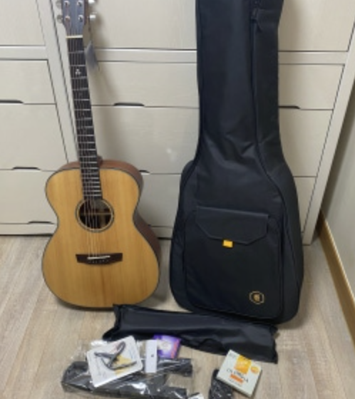 통기타 첨으로 배우고싶어서 사는 김에 디자인도 고려해서 결정했는데 생각보다 더 예쁘네요. 소리는 아직 실력이 없어서 잘 모르겠지만 여러 후기가 증명해주니 열심히 배워볼게요! 요청사항도 잘들어주셔서 감사합니다ㅎㅎ