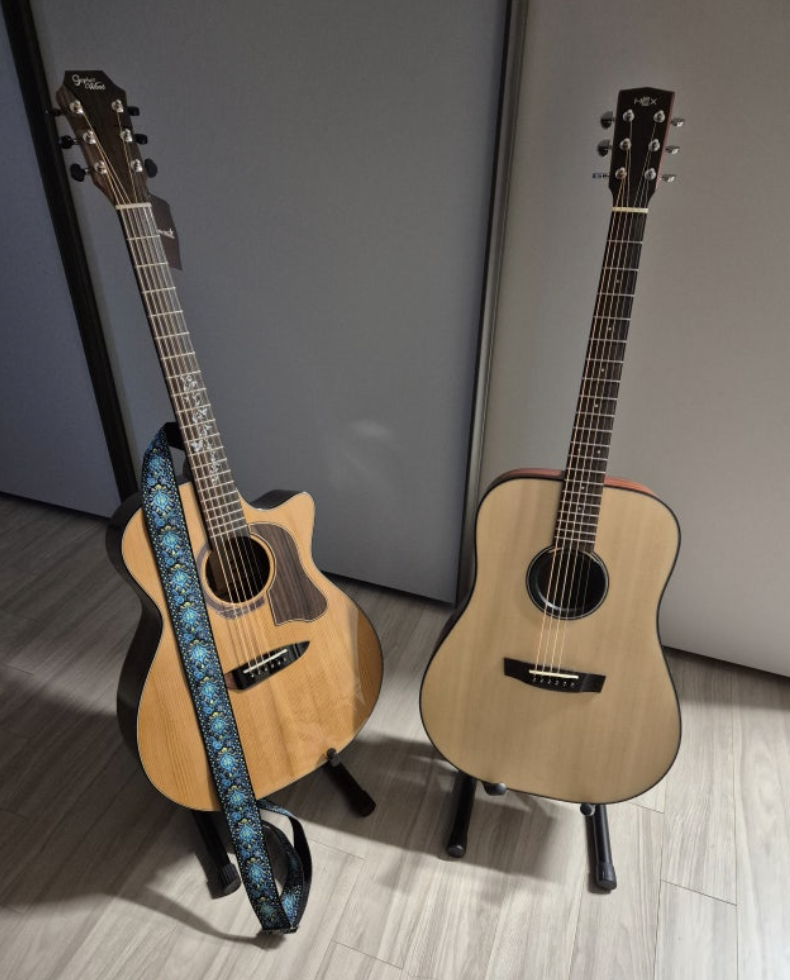 기타를 사용해보니 사운드가 따뜻하고 풍부해서 매우 만족스러워요. 특히 중저음이 탄탄하게 잡혀 있어 코드 연주와 핑거스타일 모두 훌륭하게 소화합니다. 마감 상태도 깔끔하고 그립감이 좋아 연주할 때 편안함을 느껴요. 가격 대비 퀄리티가 뛰어나 모두에게 자신있게 추천할만한 기타입니다!